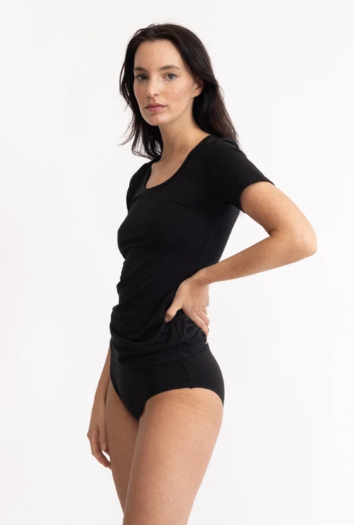 Soft, shape-retaining, pleasant products, I also like to wear the black v-neck T-shirt under a sporty jacket. I recommend to everyone!