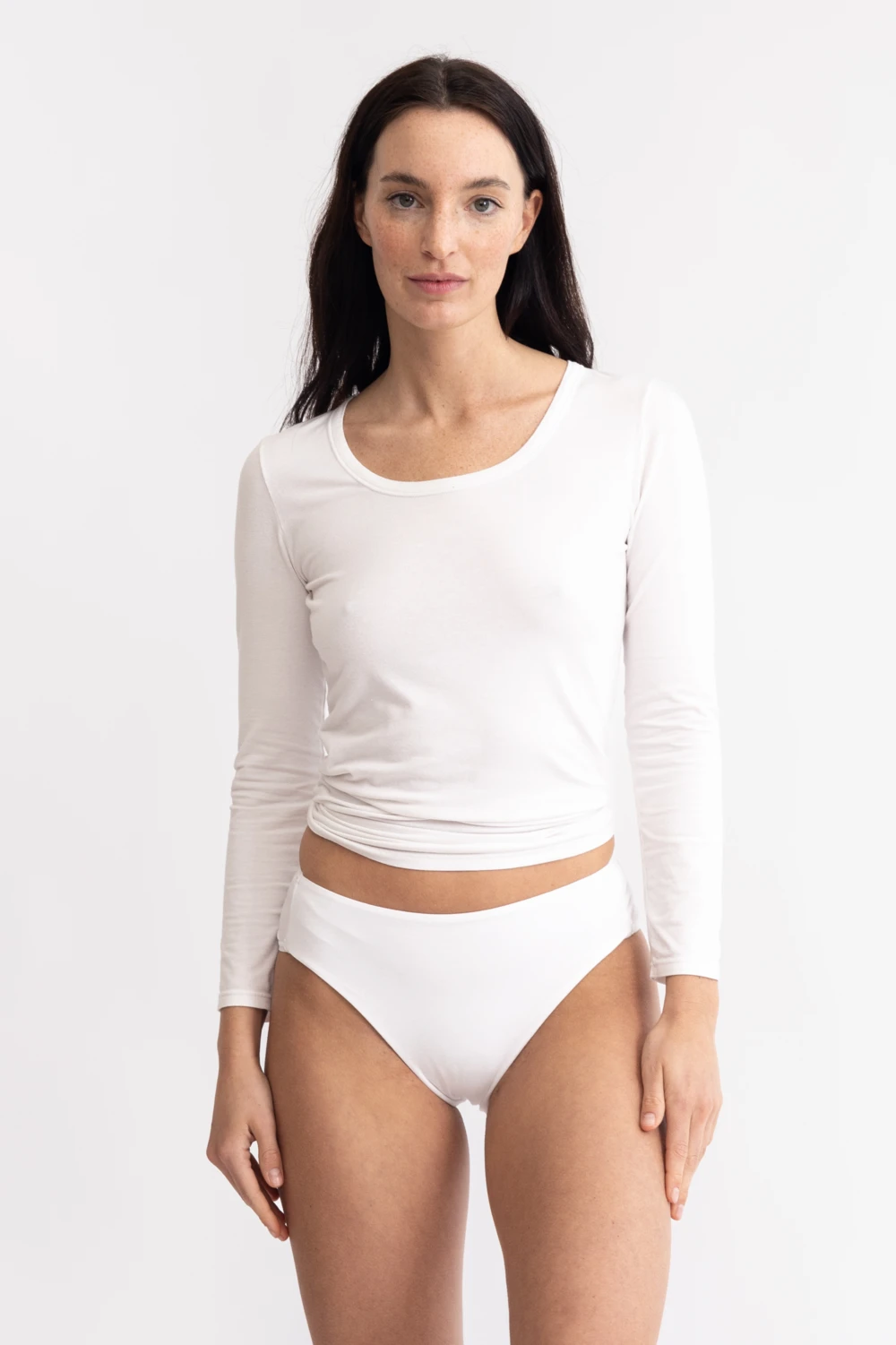 Label-free design: Size and washing information is printed with skin-friendly, water-based ink so that nothing interferes with the soft, delicate feel.
